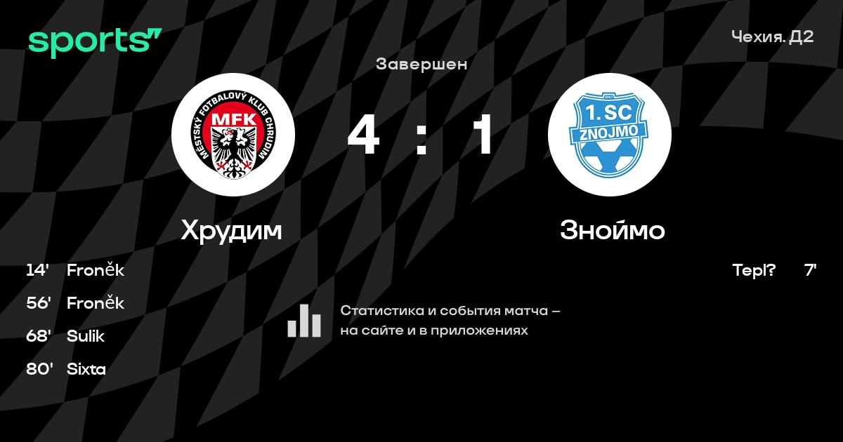 Зноймо проигрывает в 3 последних матчах в гостях в турнире «Чехия. Д2»