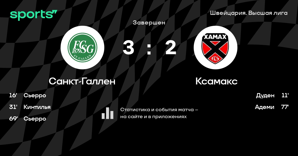Вальтерт - Камбер, Джемайли, Ошс, Гомес - Треан, Пикель, Дуден, Велозу, Рамизи - НуццолоЗапасные: Миндер, Фейзулаху, Коне, Кела, Адеми