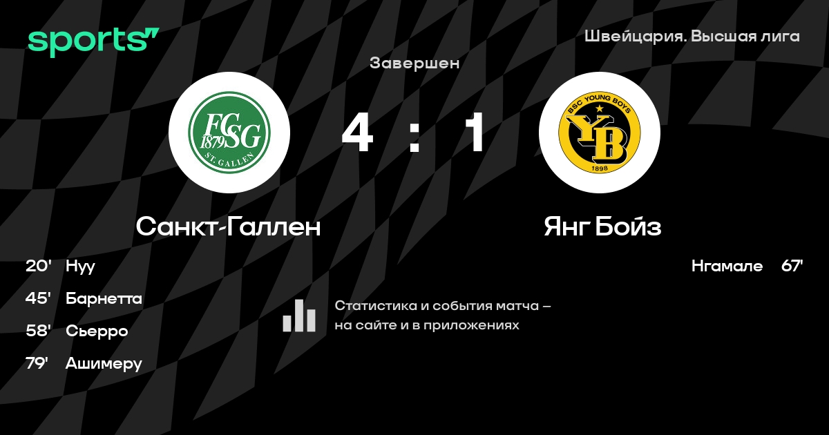 Вельфли - Гарсия, Крониг, Вютрих, Мбабу - Фасснахт, Лаупер, Гаудино - Ассале, Оаро, НгамалеЗапасные: Марцино, Лотомба, Шик, Седу, фон Берген, Соу, Нсаме