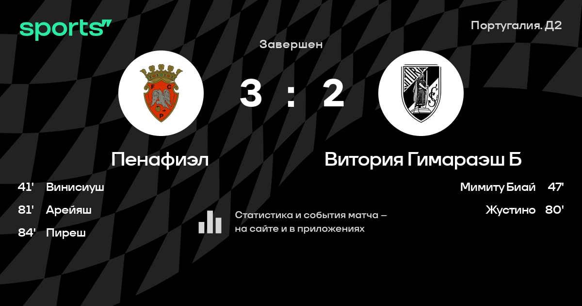 Жозе Кошта - Винисиуш, Педру Лемуш, Жоау Паулу, Мартинш - Тиагу Роналду, Рибейру, Вашку Брага - Фабиу Абреу, Рибейру, ПирешЗапасные: Иву Гонсалвеш, Паулу Беса, Кристиан, Рафа Соуза, Сантуш, Арейяш, Каэтану