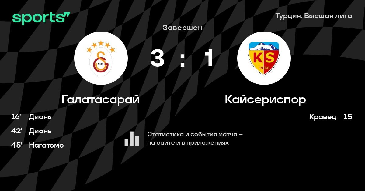 Муслера - Нагатомо, Маркао Тейшейра, Донк, Мариано - Акбаба, Фернандо, Ндиайе, Бельханда, Фегули - ДианьЗапасные: Чипе, Байрам, Гюней, Линнес, Ташдемир, Чалык, Акгюн, Митроглу, Челик