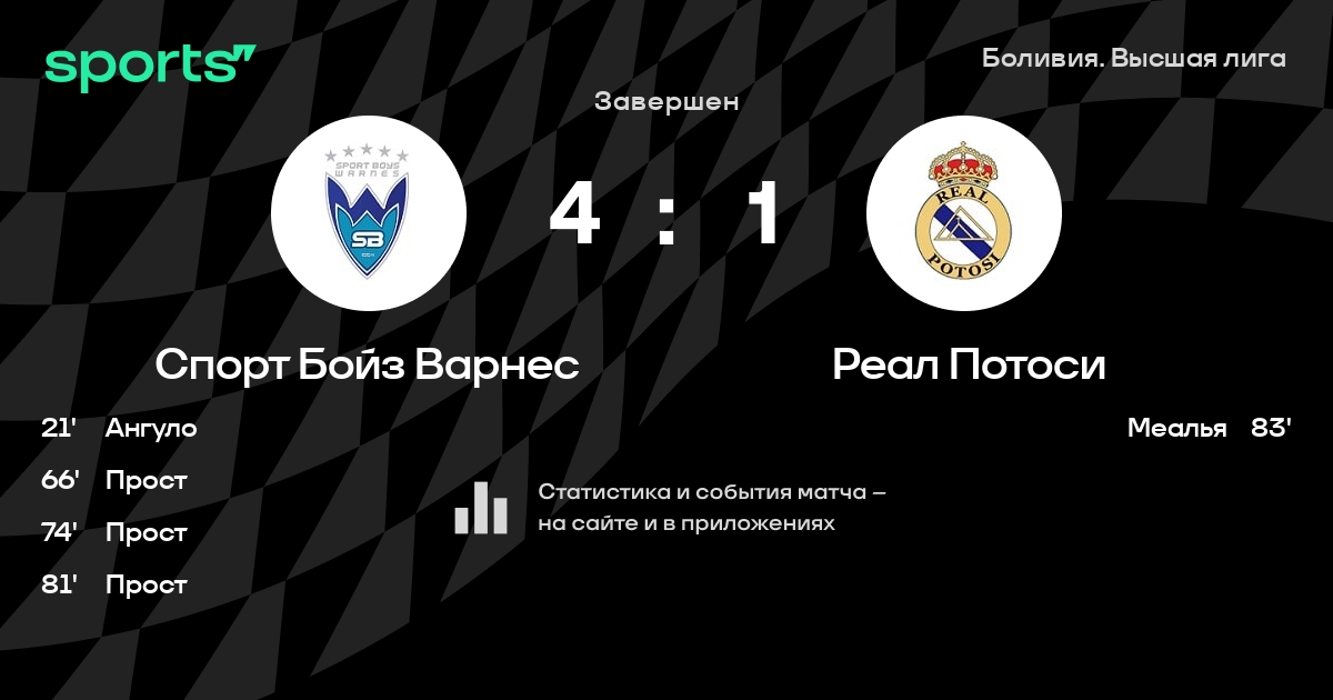 Трансляция Спорт Бойз Варнес - Реал Потоси