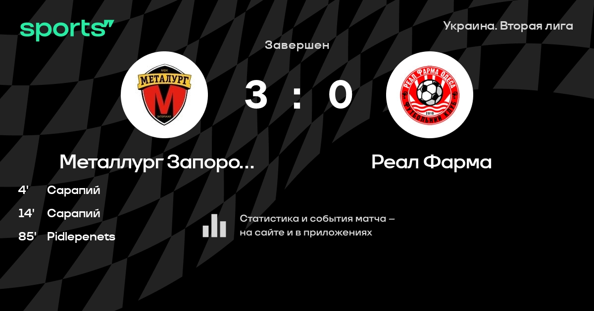 Металлург Запорожье – Реал Фарма: коэффициенты