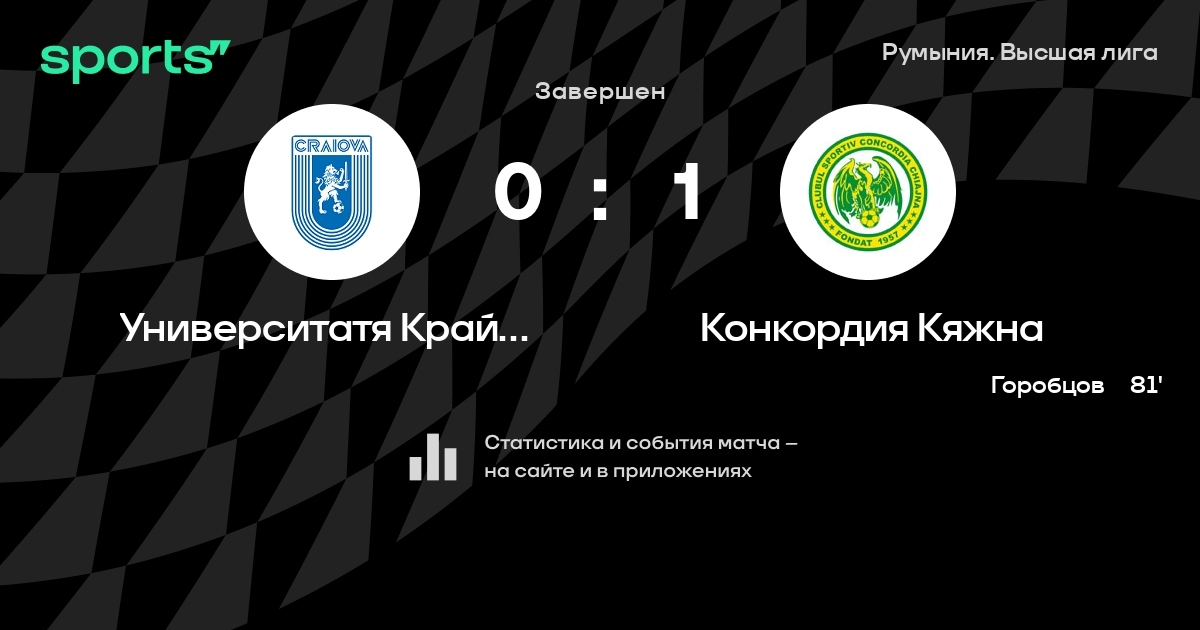 Университатя Крайова – Конкордия Кяжна: коэффициенты