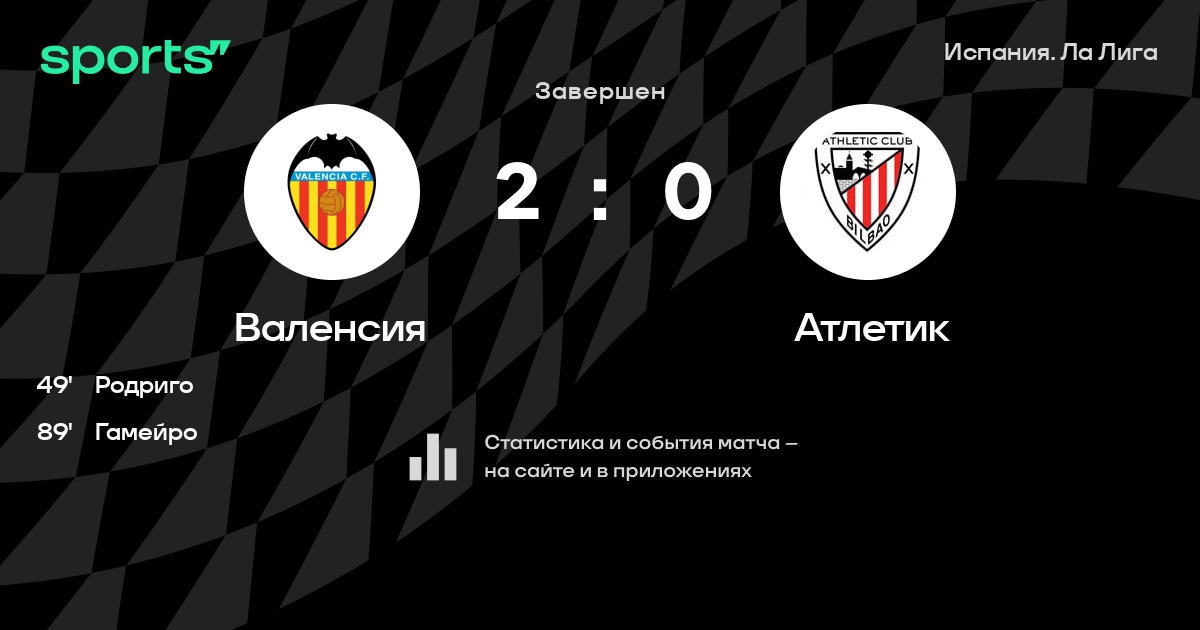 «Валенсия» победила «Атлетик» (2:0) за счет голов Родриго и Гамейро