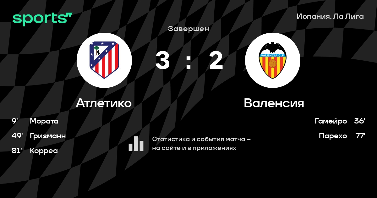 Облак - Филипе Луис, Годин, Савич, Хуанфран - Лемар, Сауль, Родри Эрнандес, Коке - Мората, ГризманнЗапасные: Адан, Арьяс, Монтеро, Витоло, Парти, Корреа, Калинич