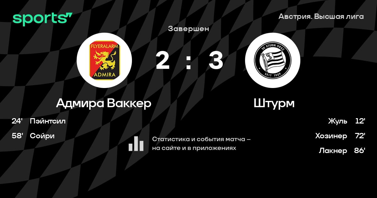 Ляйтнер - Шерцер, Бауэр, Форсагер, Цвиршиц - Пэйнтсил, Тот, Майер, Юлманд, Сойри - ЯколишЗапасные: Куттин, Айву, Маличек, Заанек, Бакыш, Штаркль