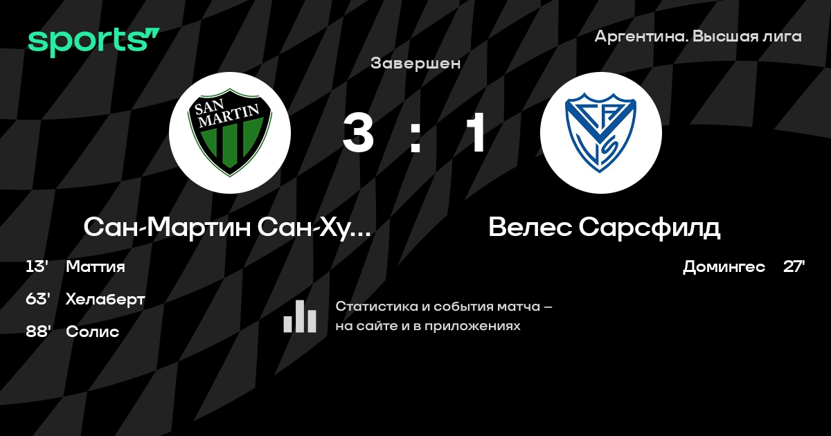 Трансляция Сан-Мартин Сан-Хуан - Велес Сарсфилд