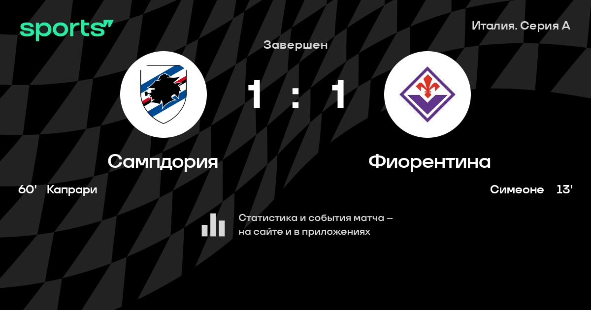 Смотрите прямую трансляцию на Sports.ru: «Сампдория» — «Фиорентина»