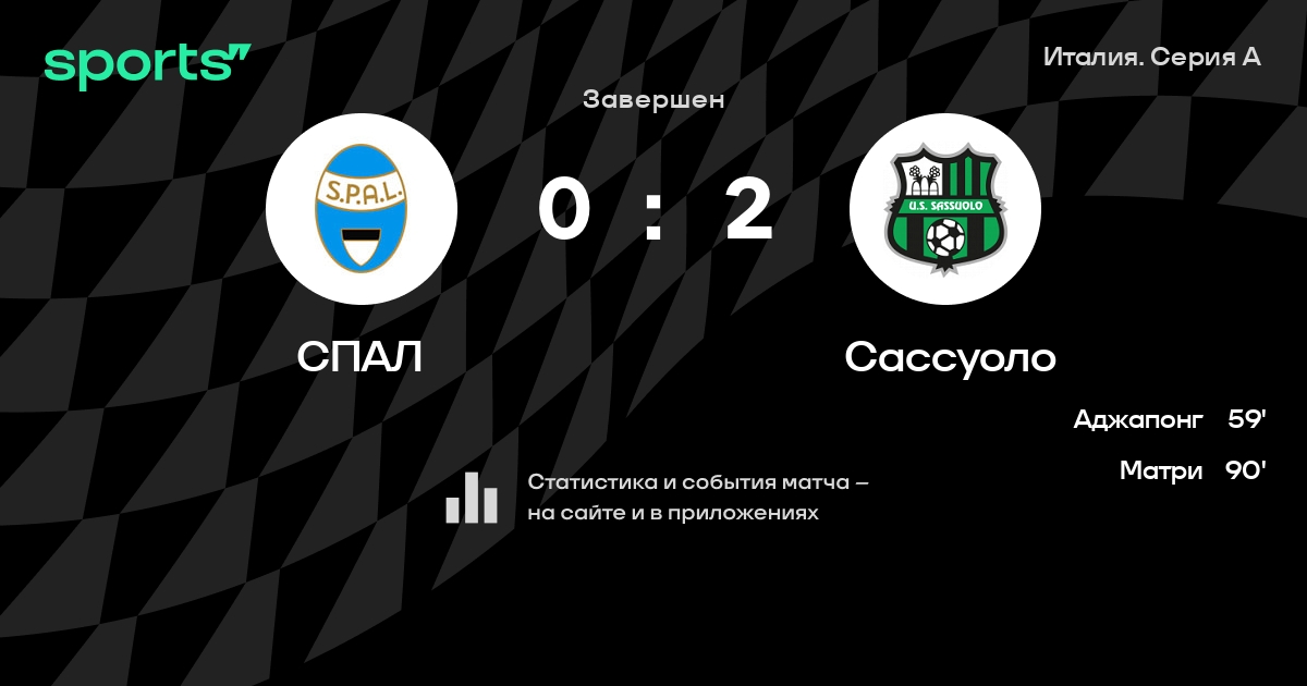 Консильи - Феррари, Маньяни, Марлон - Рожерио, Маньянелли, Бурабия, Аджапонг - Джуричич, Бога, БабакарЗапасные: Пеголо, Делль`Орко, Лемос, Лирола, Серникола, Боатенг, Локателли, Сенси, Берарди, Бриньола, Ди Франческо, Матри