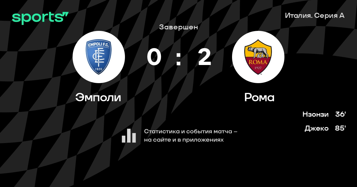 | 18 | Эмполи | 38 | 10 | 8 | 20 | 51 | 70 | -19 | 38 | ||
