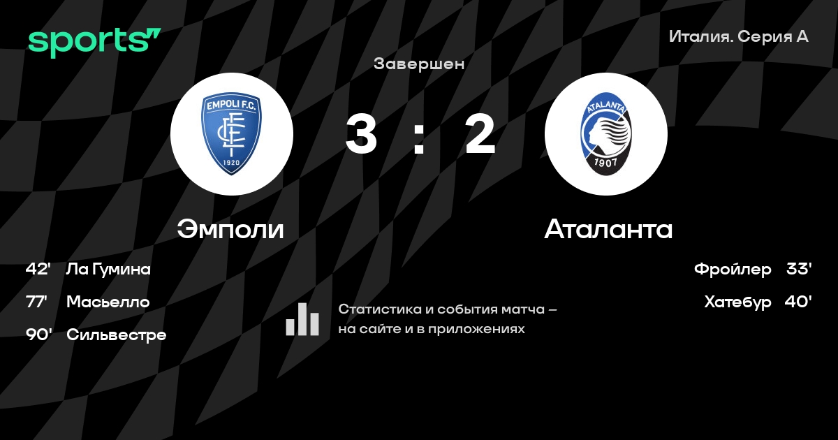 Бериша - Масьелло, Джимшити, Толои - Гозенс, Гомес, Фройлер, де Рон, Хатебур - Иличич, СапатаЗапасные: Голлини, Росси, Аднан, Бетелла, Кастань, Манчини, Паломино, Реца, Пашалич, Пессина, Ригони, Вальдзаниа