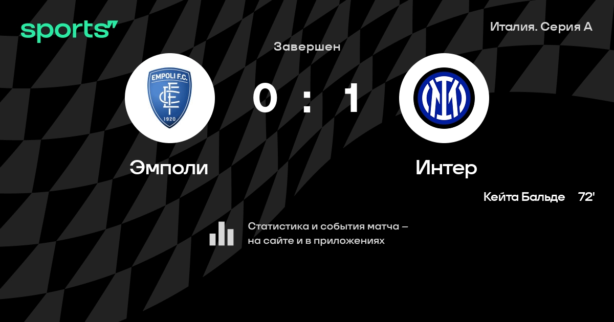 Гол Кейта принес «Интеру» победу над «Эмполи» – 1:0. Sports.ru показывал прямую трансляцию