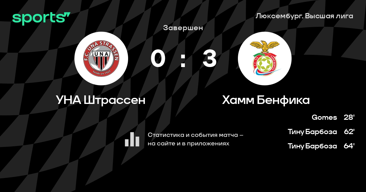 Трансляция УНА Штрассен - Хамм Бенфика