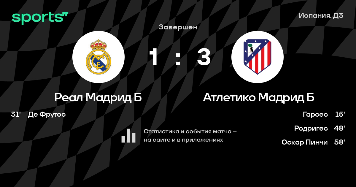 Трансляция Реал Мадрид Б - Атлетико Мадрид Б