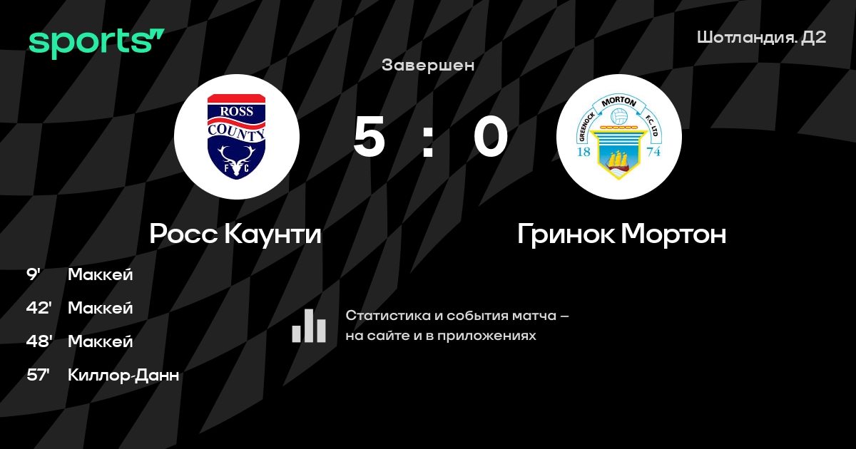 | 5 | Гринок Мортон | 36 | -9 | 46 |