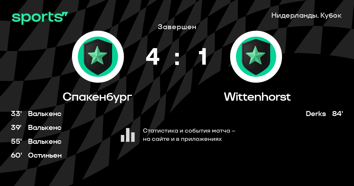 Witt - Zanders, Scheres, Spreeuwenberg, Zanders - Hanssen, Daniels, Wijnhoven, Zanders - Derks, BeurskensЗапасные: Arts, Spreeuwenberg, Beurskens, van der Sterren, Heijnen