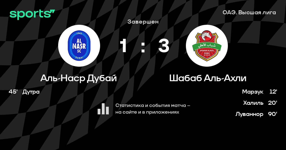 Трансляция Аль-Наср Дубай - Шабаб Аль-Ахли