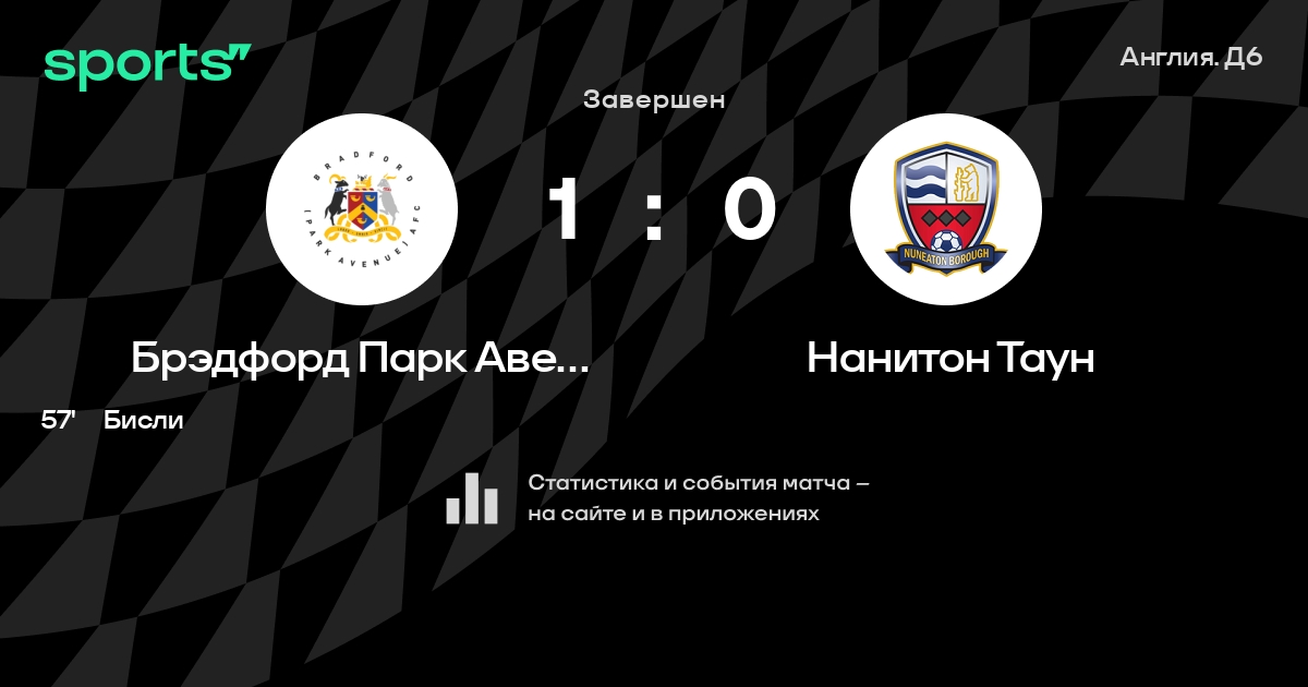 Брэдфорд Парк Авеню – Нанитон Таун: коэффициенты