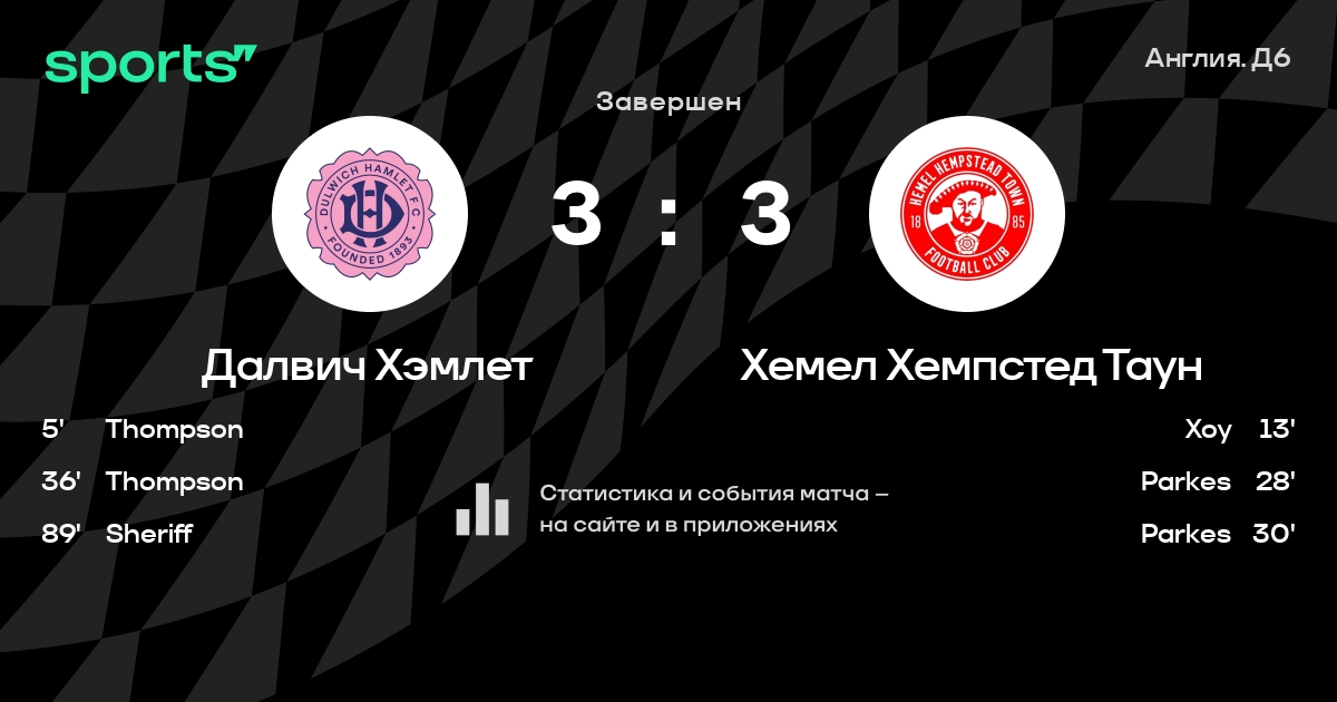 Трансляция Далвич Хэмлет - Хемел Хемпстед Таун