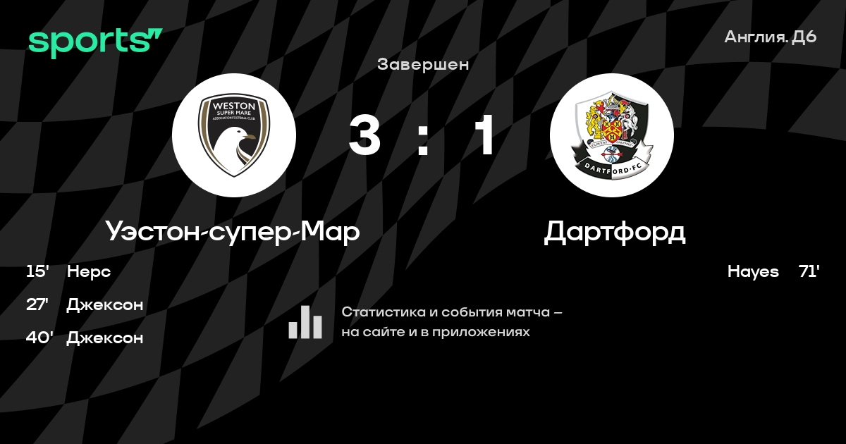 Уэстон-супер-Мар – Дартфорд: коэффициенты
