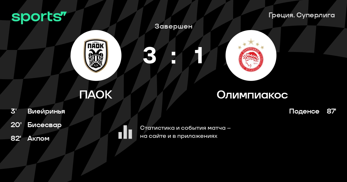 Трансляция ПАОК - Олимпиакос