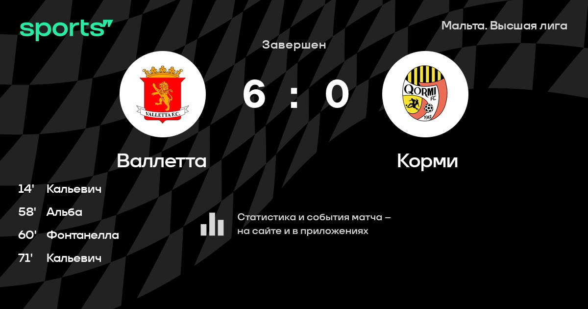 Azzopardi - Микаллеф, Gesualdi, Busuttil, Abela, Mansi, Zammit - Cassar, Соарес, Янкам - GusmanЗапасные: Буджея, Ghio, Arieta, Kim, Камиллери, dos Santos Ferreira, Борг