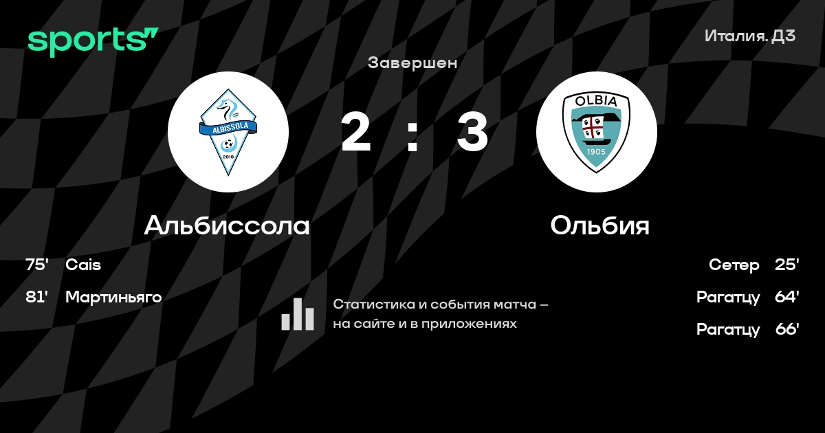 Альбертони - Nossa, Опруц, Mahrous, Россини - Balestrero, Дамонте, Sibilia - Мартиньяго, Cais, BezziccheriЗапасные: Piccardo, Bambino, Oukhadda, Calcagno, Oliana, Гулли, Sancinito, Gargiulo, Raja, Бартулович, Gibilterra, Руссо