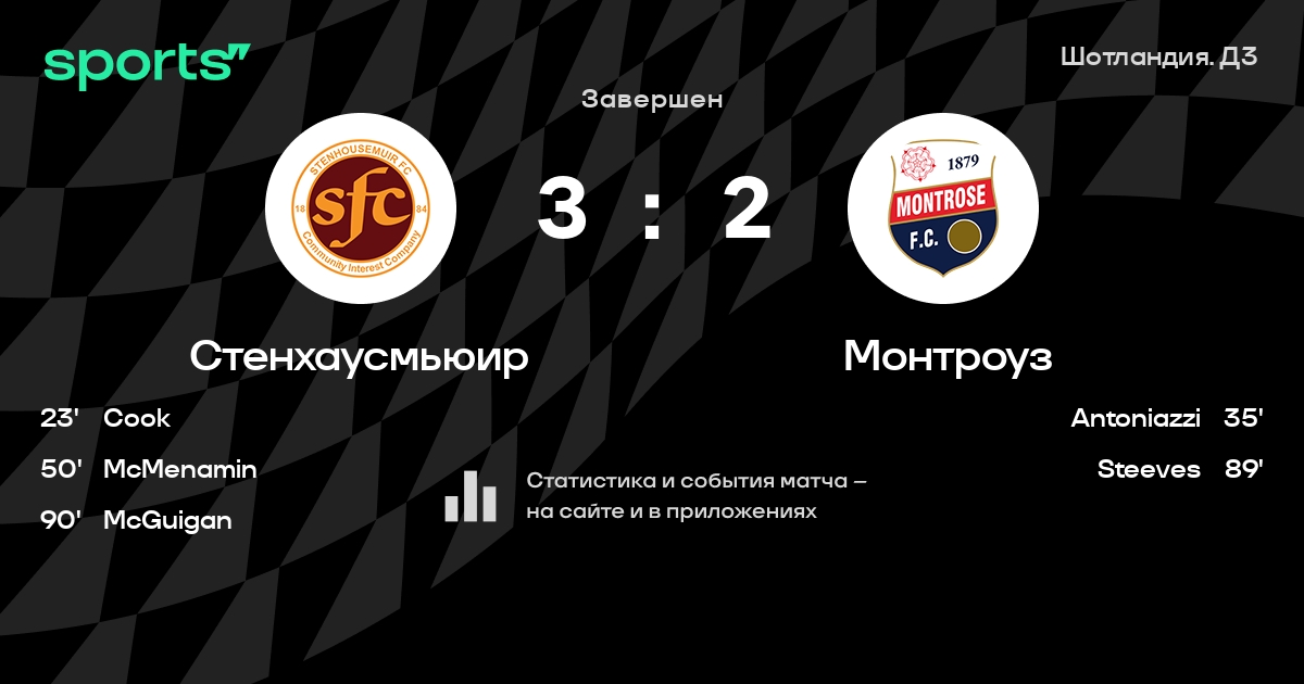 Смит - Cook, Donaldson, Гарсия Тена, Нилл - Dickson, Ferry, Патон - Дати, McGuigan, McMenaminЗапасные: Макминн, McBrearty, Reid, Гиббонс, Росс, О’Хара, Vaughan