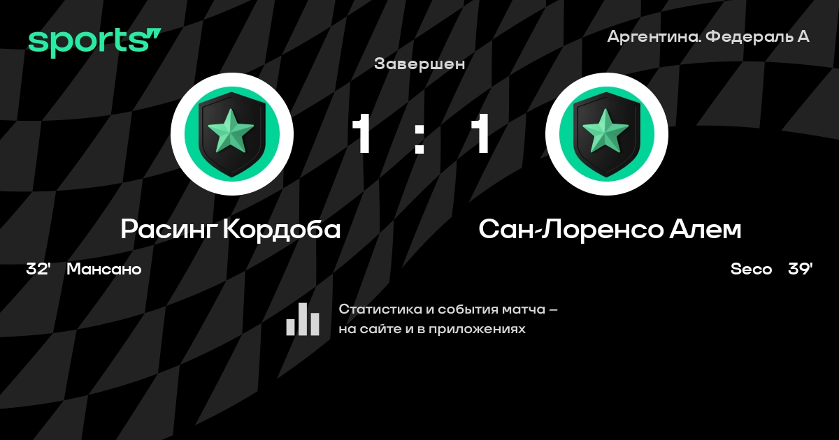 Расинг Кордоба – Сан-Лоренсо Алем: коэффициенты