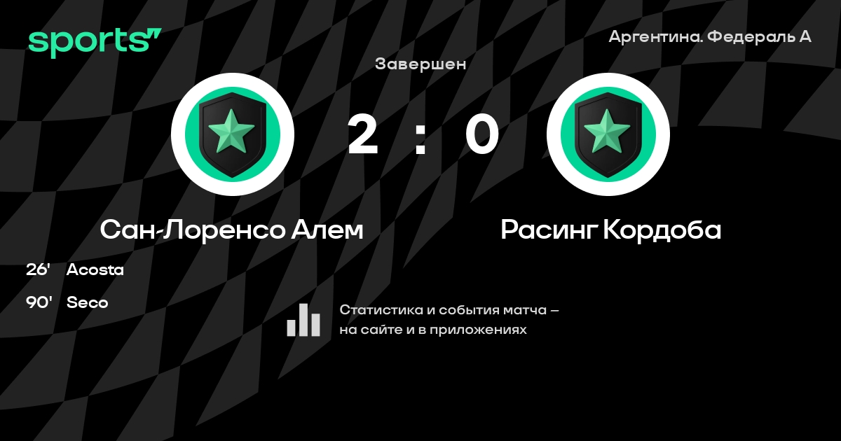 Сан-Лоренсо Алем – Расинг Кордоба: коэффициенты