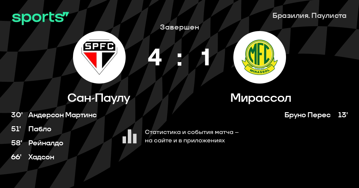 Волпи - Рейналдо, Андерсон Мартинс, Арболеда, Бруно Перес - Жусилей, Хадсон, Нене, Эвертон, Элиньо - ПаблоЗапасные: Жан, Бруно Алвес, Лео Пиньейро, Игор Винисиус, Фелипе Араруна, Лизьеро, Виллиан Фариас, Эвертон Фелипе, Бреннер