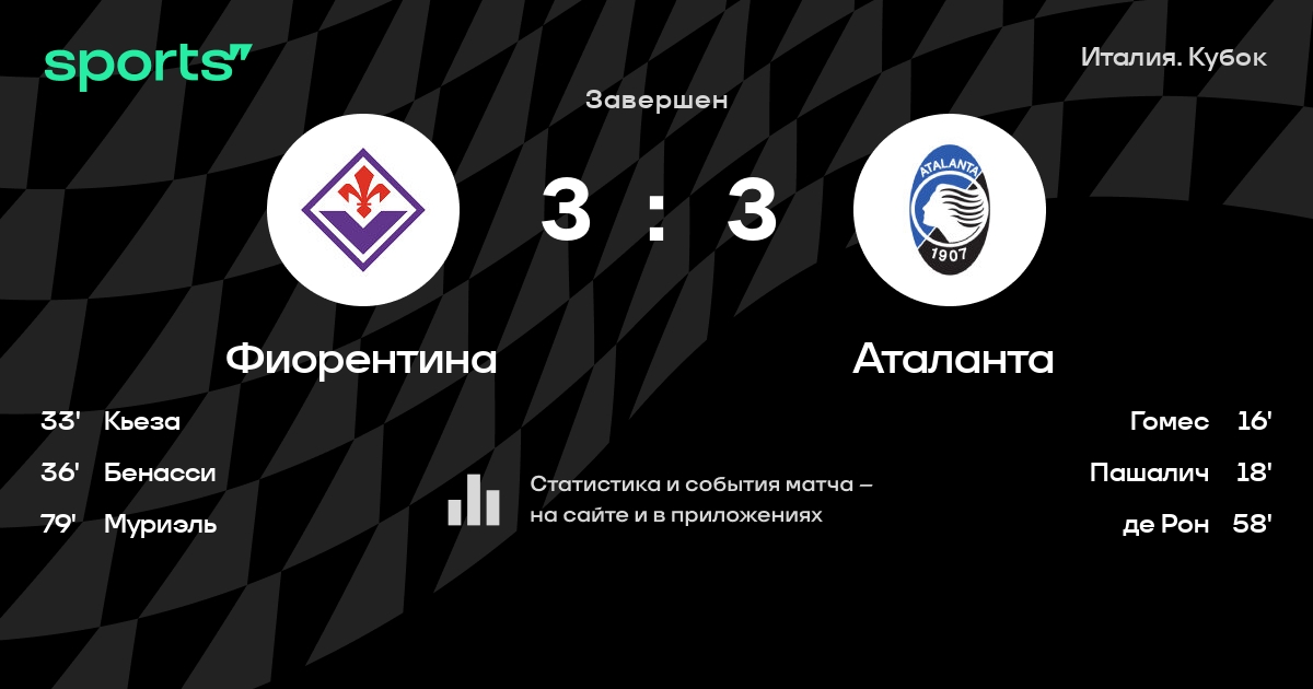 Кубок Италии. 1/2 финала. «Фиорентина» и «Аталанта» сыграли вничью – 3:3