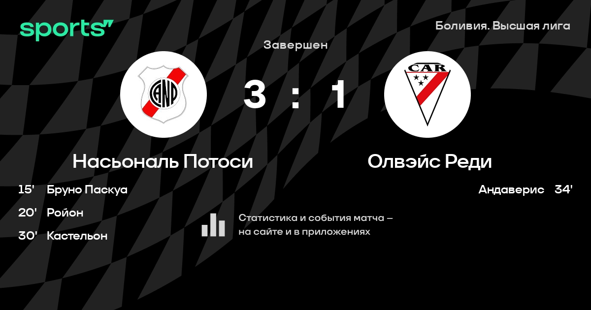 | 3 | Насьональ Потоси | 26 | 15 | 5 | 6 | 44 | 22 | +22 | 50 | ||