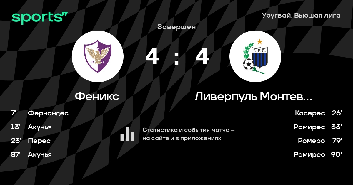 Феникс – Ливерпуль Монтевидео: коэффициенты