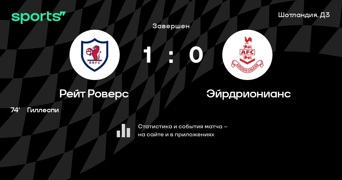 Рейт Роверс – Эйрдрионианс: коэффициенты