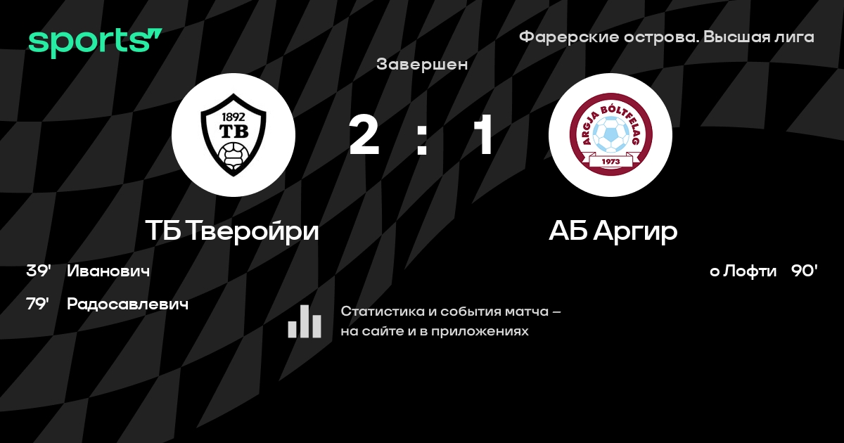 ТБ Тверойри – АБ Аргир: коэффициенты