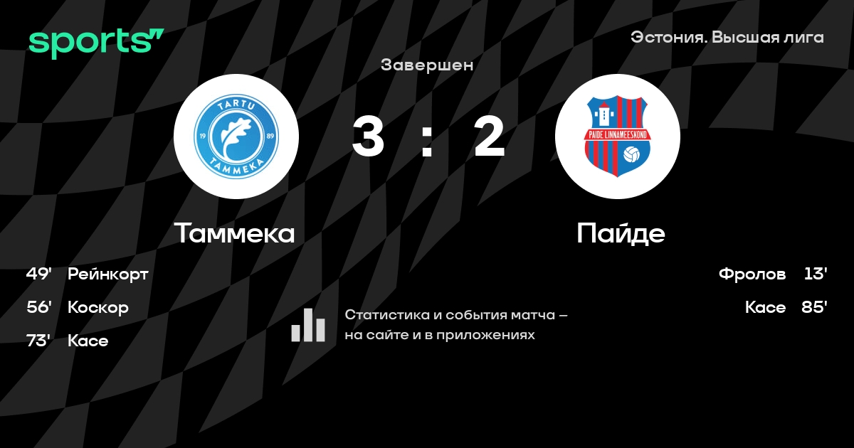 Кийдъярв - Окойе, Сайринен, Андерсон - Ярвисте, Лаабус, Текко, Паю - Коскор, Ульянов, РейнкортЗапасные: Agarmaa, Таммиксаар, Алоэ, Маанас, Каппер, Веэлма, Прейман