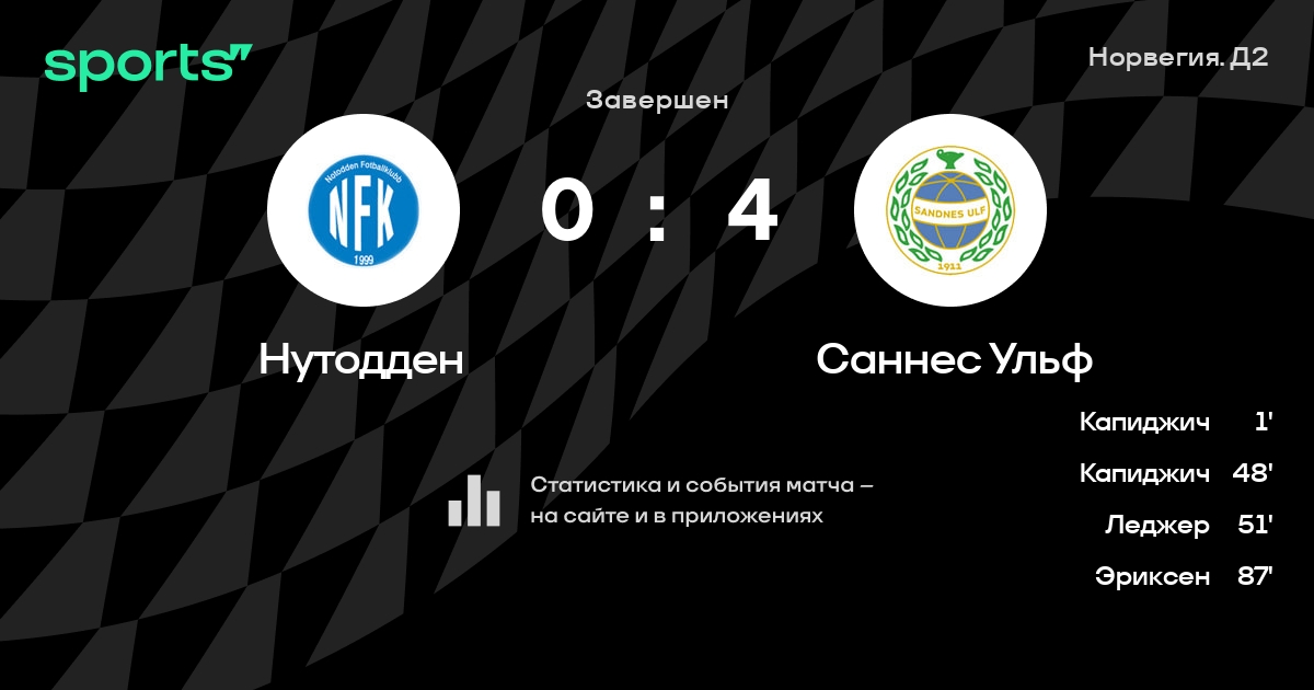 Vasby - Леджер, Ульсен, Johansen, Jenssen, Саласива - Tosse, Holmen - Ibrahim, Bakke, BrekkeЗапасные: Греттеруд, Hagen, Мидтгарден, Робсон, Странге
