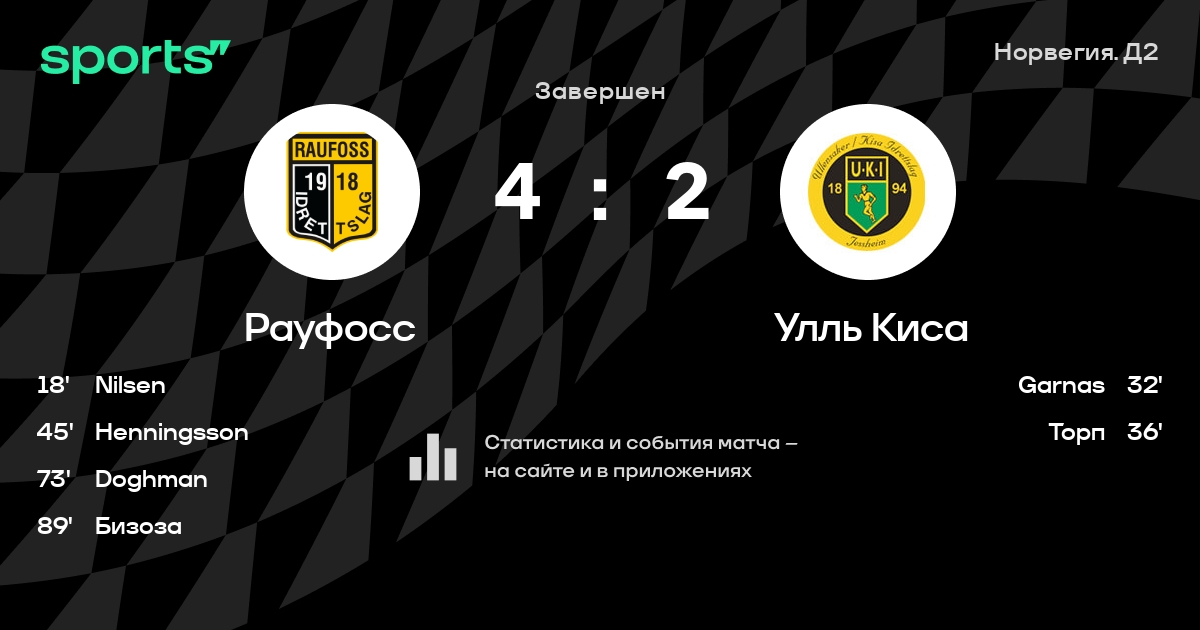 Lauvli - Nesso, Расе, Simenstad, Owusu, Nilsen - Moldskred, Dadjo - Фанди, Loken, HenningssonЗапасные: Johnsen, Fremstad, Doghman, Simenstad, Бизоза, Giaever