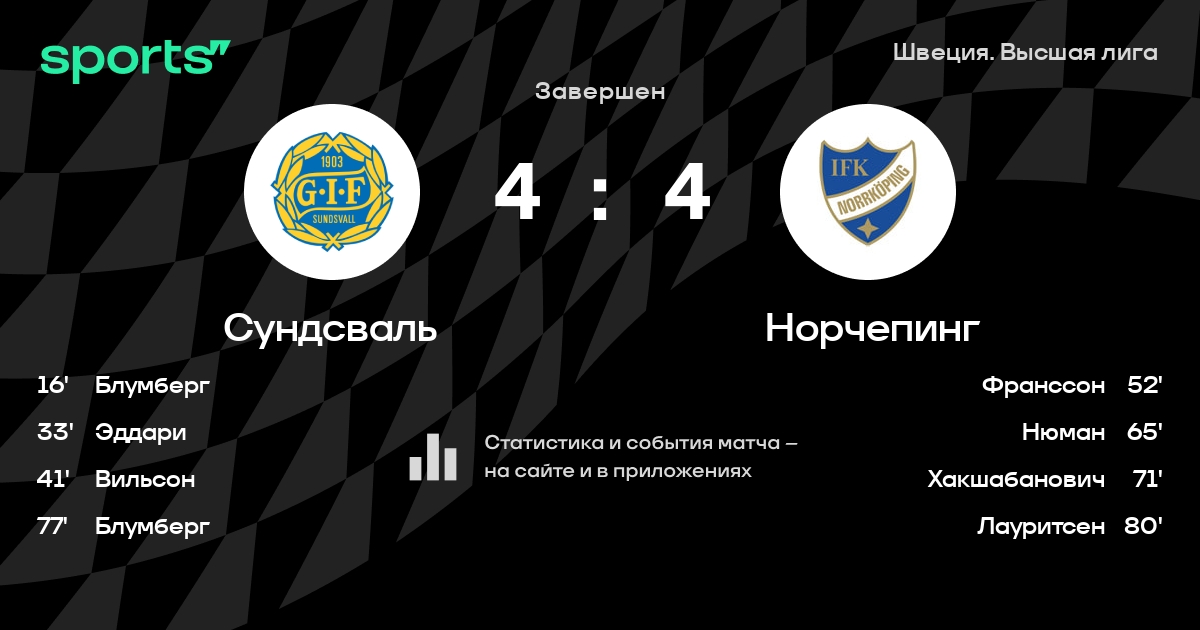 Петтерссон - Лауритсен, Ларсен, Дагерстоль - Тораринссон, Блумквист, Франссон, Жерсон - Хакшабанович, Скрабб, НюманЗапасные: Вайкла, Бинаку, Кастегрен, Смит, Кусу, Сема, Альмквист