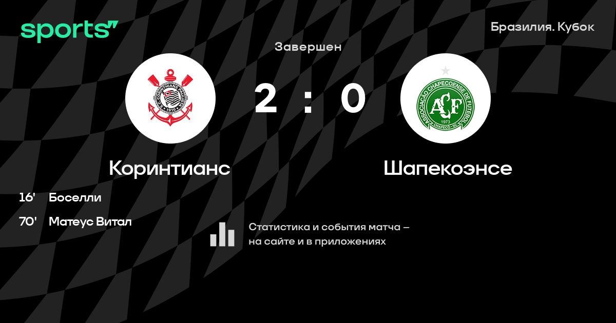 Кассио - Карлос Аугусто, Педро Энрике, Маноэл, Фагнер - Ральф, Рамиро, Клайсон, Сорноса, Педриньо - БоселлиЗапасные: Валтер, Марлон Боржес, Мендес, Маседо, Тиагиньо, Ришард, Жадсон, Режис, Матеус Витал, Вагнер Лав, Маркиньос, Андре