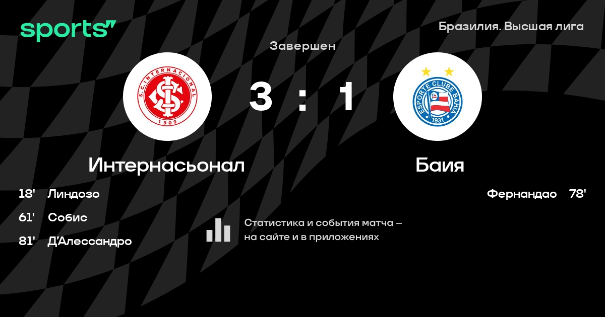 Ломба - Уэндел, Куэста, Роберто, Зе Карлос - Густаво, Линдозо, Эденилсон - Д’Алессандро, Лопес, СобисЗапасные: Фернандес, Клаус, Бруно Виейра, Безерра, Парагуайо, Саррафиоре, Ритли, Веллингтон, Альвес, Неилтон, Педро Лукас, Потткер