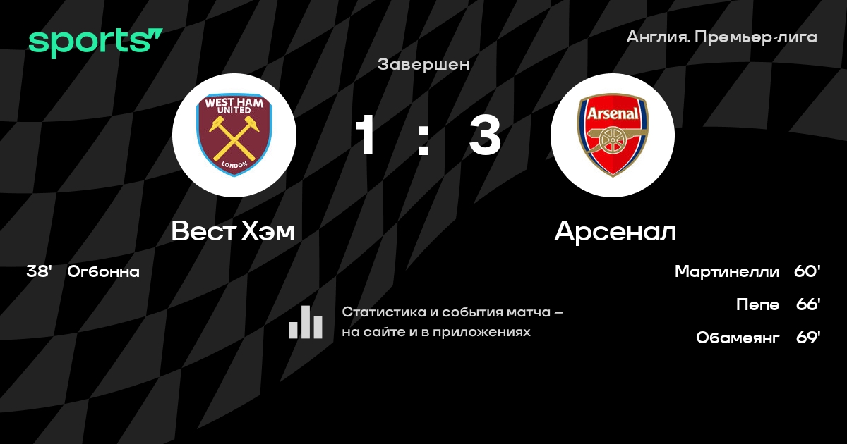 «Арсенал» забил 3 гола, трижды ударив в створ в матче с «Вест Хэмом»