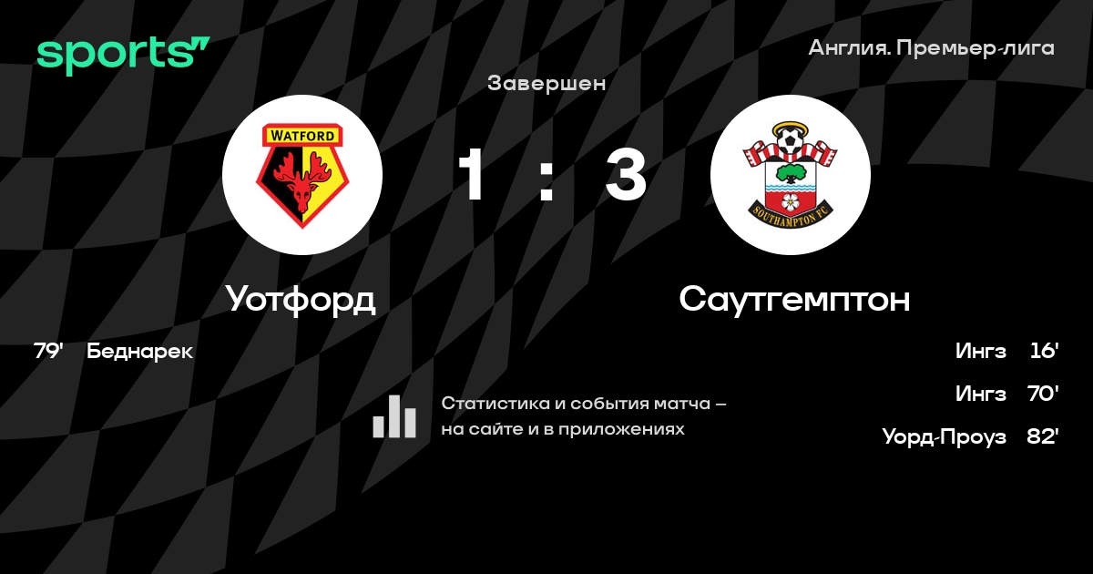 Маккарти - Бертран, Вестергор, Беднарек, Уокер-Питерс - Редмонд, Ромеу, Уорд-Проуз, Смоллбоун - Ингз, ЛонгЗапасные: Ганн, Данзо, Валери, Воукинс, Армстронг, Янкевиц, Адамс, Обафеми, Телла