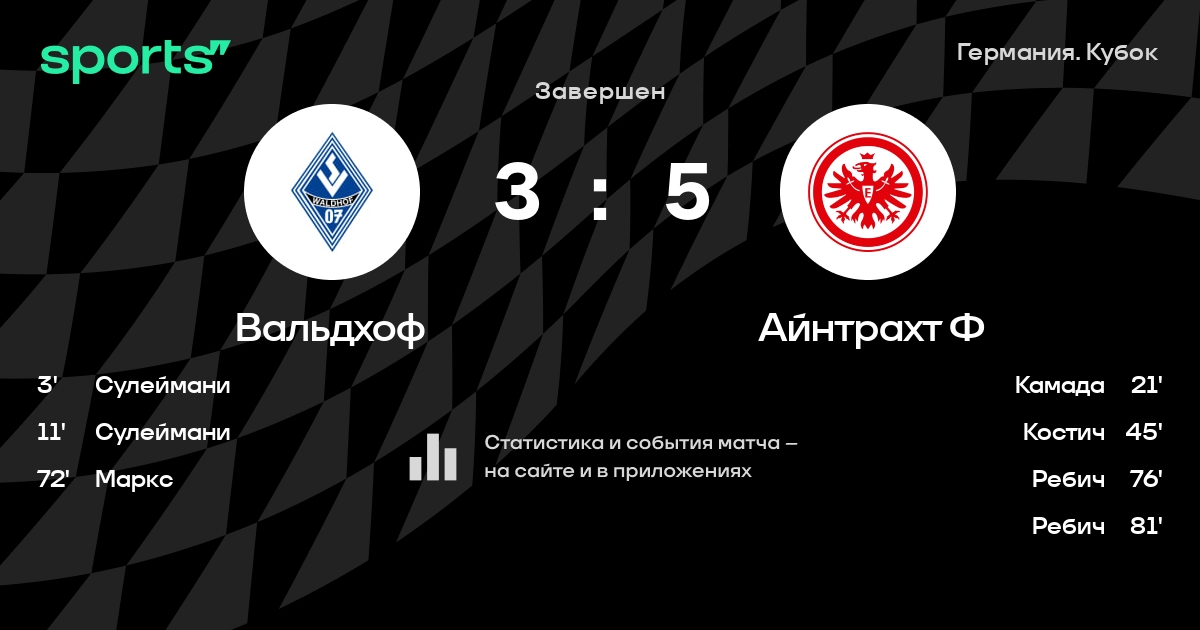 Трапп - Хинтереггер, Хасебе, Абраам - Костич, Камада, Фернандес, Кор, да Кошта - Ребич, ЙовеличЗапасные: Видвальд, Дурм, Ндика, Русс, Чендлер, Гачинович, Торро, де Гузман, Пасиенсия