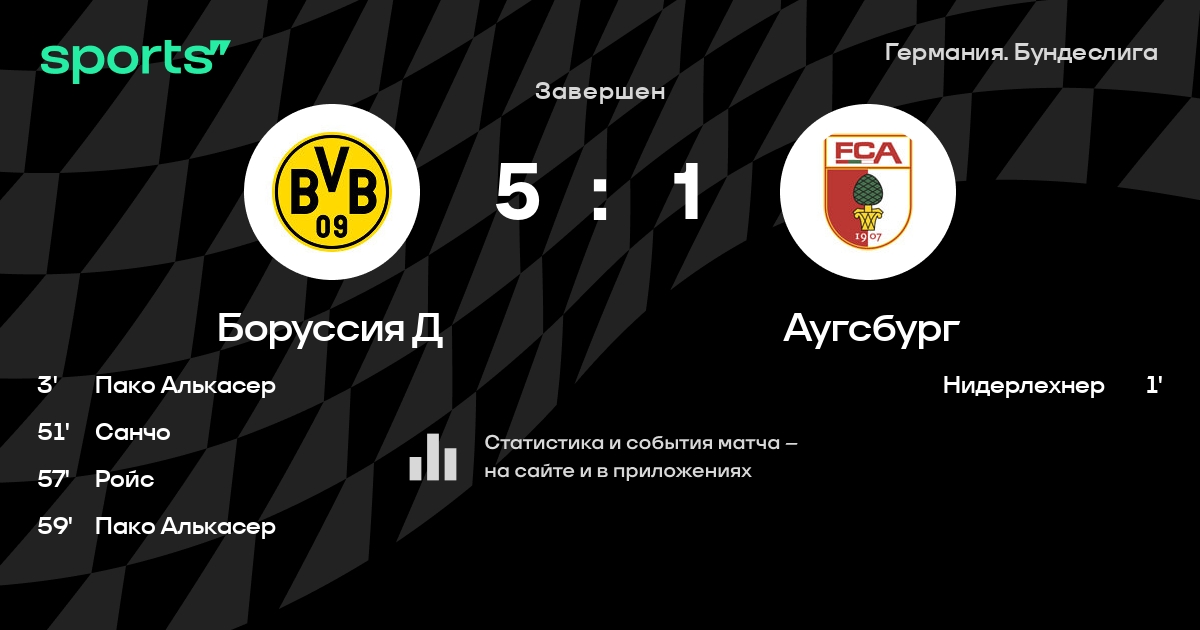 «Боруссия» Дортмунд разнесла «Аугсбург» – 5:1. Пако сделал дубль, у Витцеля две голевые