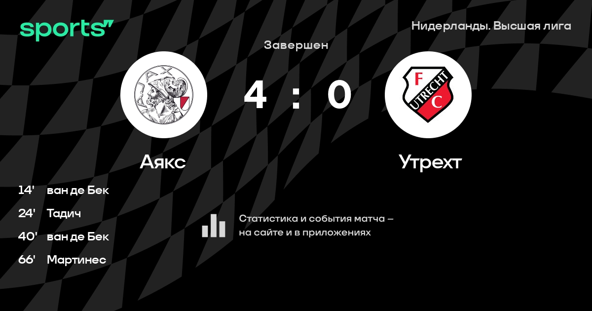 Онана - Тальяфико, Блинд, Велтман, Мазрауи - Мартинес, Зиеш, ван де Бек - Промес, Тадич, ЛабьядЗапасные: Котарски, Бруну Варела, Дест, Схюрс, Гравенберх, Марин, де Йонг, Альварес, Хунтелар, Ланг