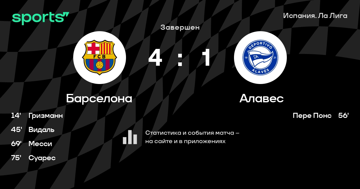 тер Стеген - Альба, Умтити, Пике, Серджи Роберто - Аленья, Бускетс, Видаль - Гризманн, Суарес, МессиЗапасные: Нето, Семеду, Фирпо, Лангле, Ракитич, де Йонг, Карлес Перес