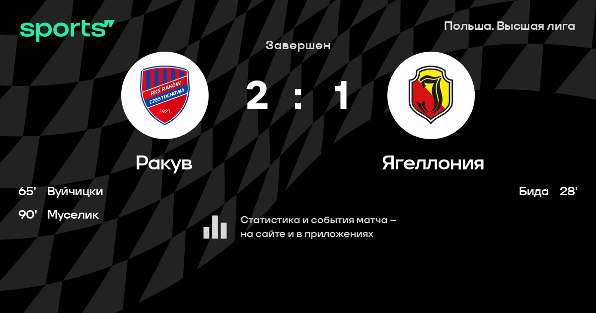 | 8 | Ягеллония | 37 | 14 | 10 | 13 | 48 | 51 | -3 | 52 | ||